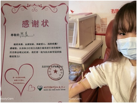 2月12日,国家知识产权局专利局代办处陈晨在献血站经过了一系列血液检查后,捐献了200cc的血液。为确保新型冠状病毒肺炎防控期间首都医疗临床用血供应,她勇敢的加入抗击新型冠状病毒肺炎疫情“最美逆行者”行列。