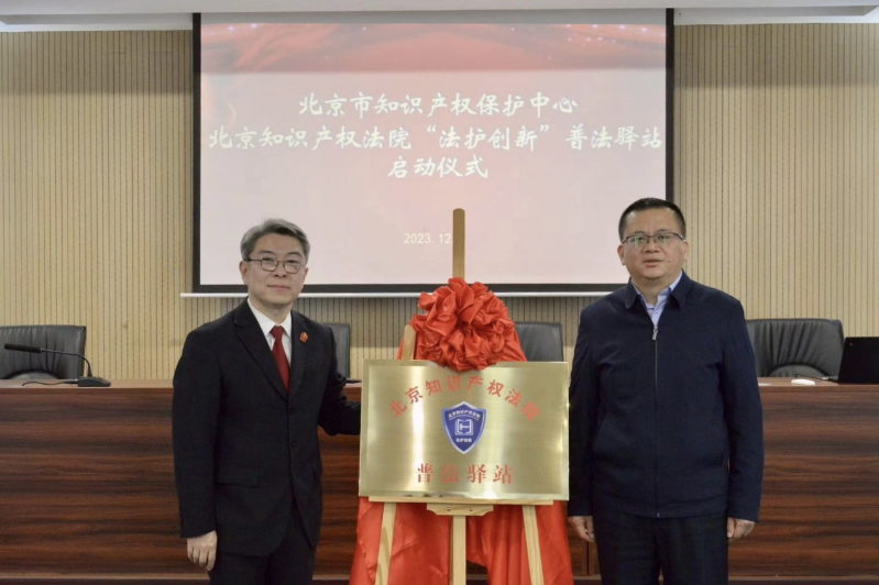 启动仪式上,北京知识产权法院立案庭庭长仪军和北京保护中心主任黄显智共同为“法护创新”普法驿站揭牌。普法驿站的入驻,旨在进一步深化北京知识产权法院“法护创新”工作机制,打通普法工作“最后一公里”,未来双方将通过实地调研、开展培训授课、以案释法等方式,为创新主体提供更加专业、更为便捷的知识产权协同保护服务。