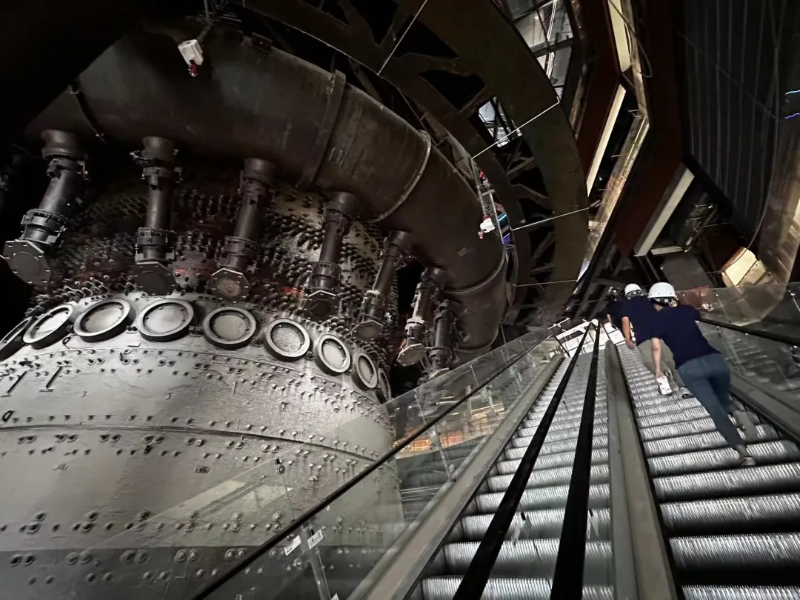 今年服贸会期间首次亮相的四高炉位于首钢园区北区工业遗址公园内,2008年停产。改造整体保留了四高炉工业遗存本体的结构与外观,同时在东侧和北侧新建了与其风貌协调的展览和会议大厅,实现历史与现代、工业风与时尚感的统一。走进内部,四高炉的炉芯被完整保留下来,其余的廊架结构经过清洗打磨,涂上防锈涂料,仍是浓浓的工业风。