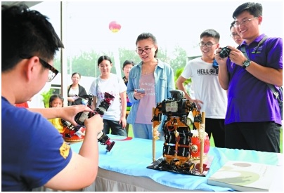 昨天,北京市大学生创新创业教育成果展现场,观众们被北京信息科技大学的跳舞机器人吸引