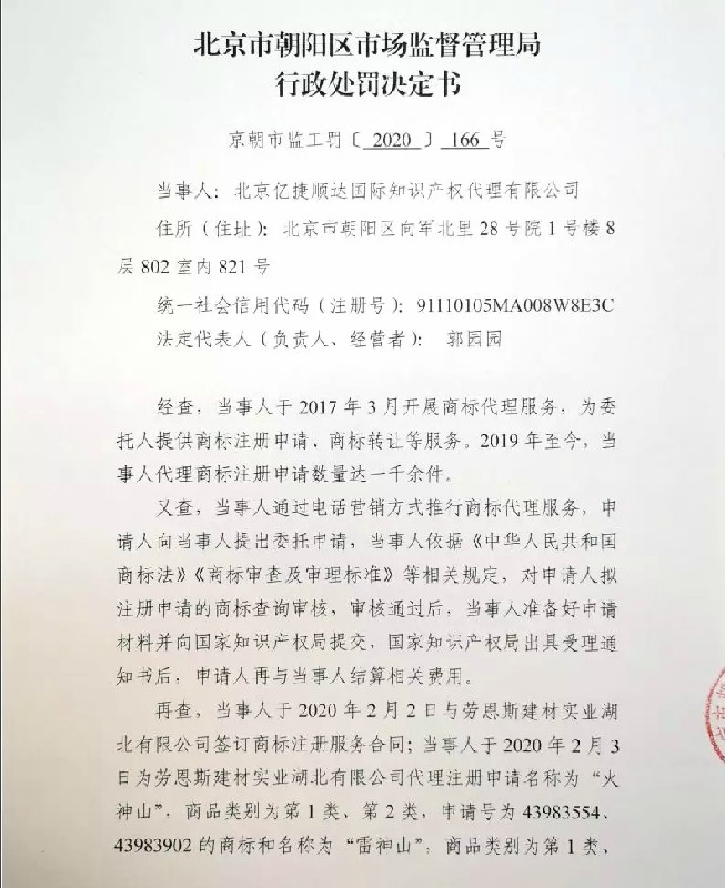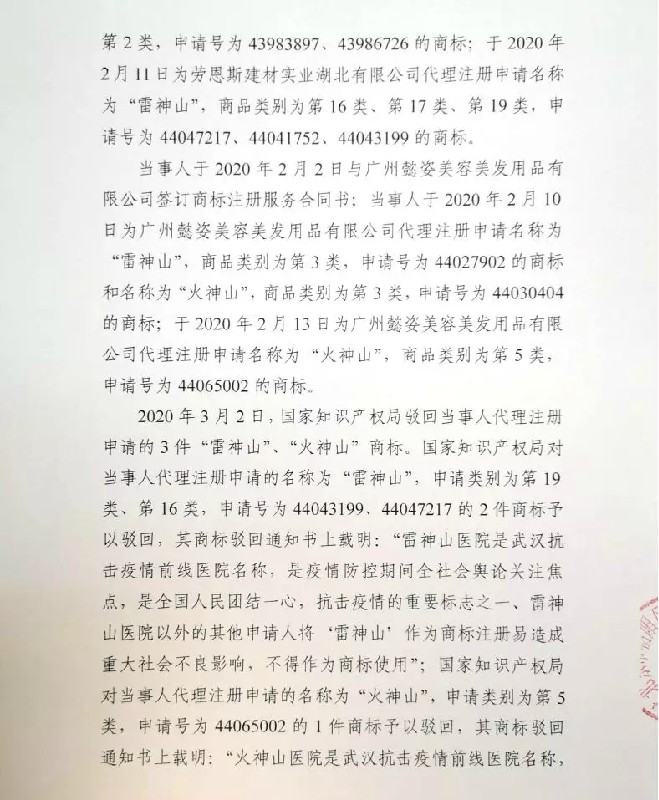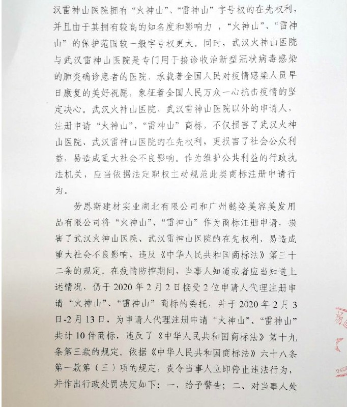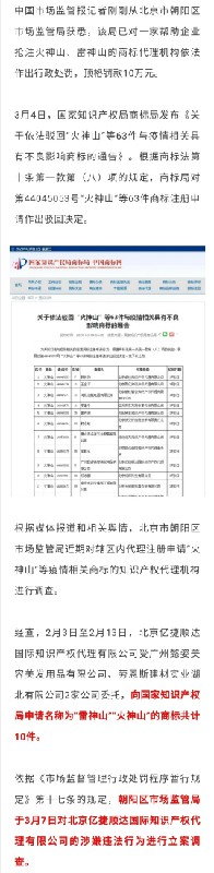 中国市场监管报:顶格处罚10万元!北京市朝阳区对抢注火神山商标的代理机构出手了