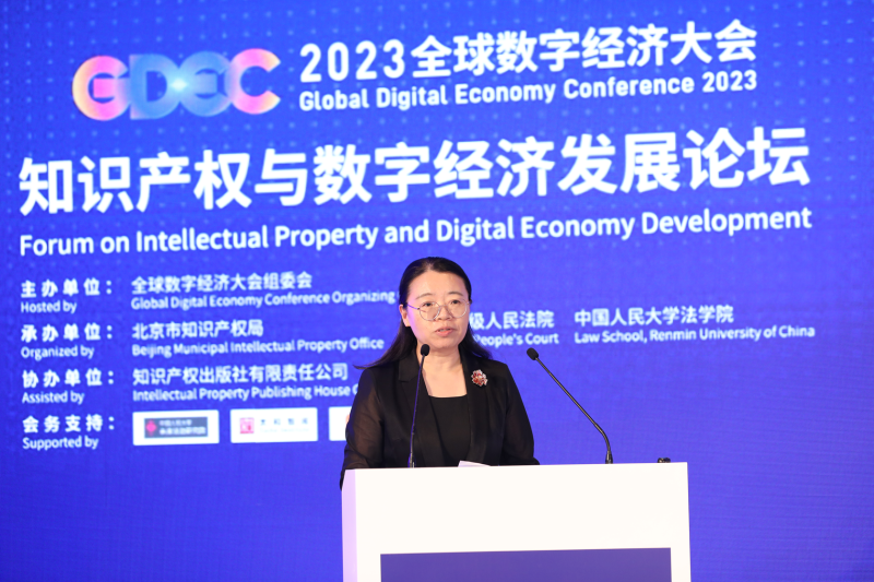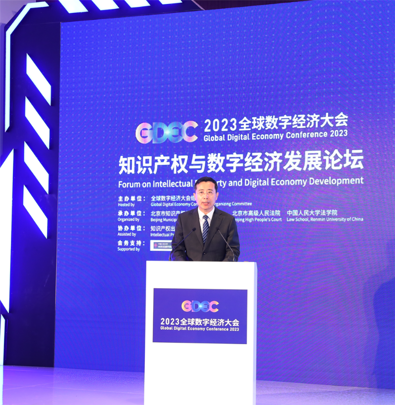 北京知识产权法院院长刘双玉,以“迎接数字挑战 加强能动司法 助力数字经济高质量发展”为主题,进行了主旨演讲,并从聚焦数字产业发展态势,回应数字经济知识产权司法需求 ;发挥审判定分止争职能,强化数字经济领域知识产权司法保护;推进审判机制改革,探索数字经济领域知识产权保护路径三个方面进行了重点介绍。同时,结合具体示例,详细展示了北京知识产权法院对于北京加快建设全球数字经济标杆城市,提供全面、高效、有力的司法保障所做的具体工作。