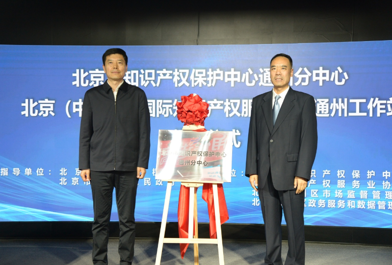 4月23日,在通州区2024年知识产权宣传周主会场活动上,北京市知识产权局党组成员、副局长蔡鑫与通州区政府党组成员、副区长倪德才共同为北京市知识产权保护中心通州分中心(以下简称通州分中心)揭牌。北京市知识产权保护中心、通州区市场监督管理局、通州区政务服务管理局等市区两级相关部门负责人参加活动。