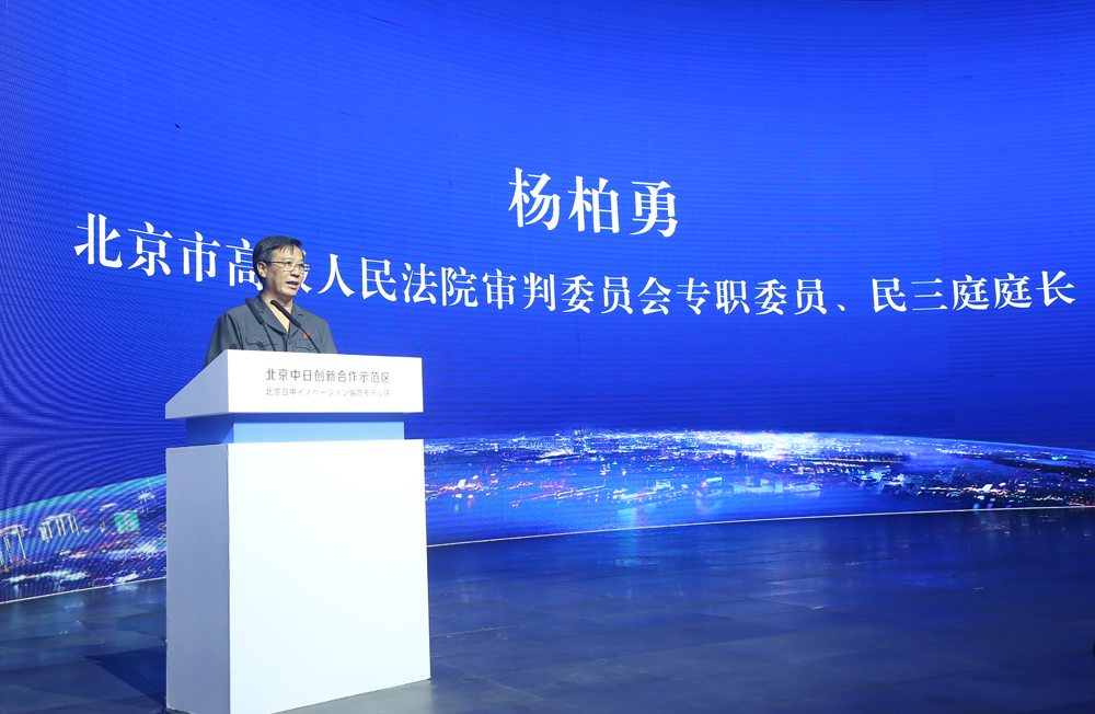 杨柏勇在致辞时表示,在北京中日创新合作示范区设立知识产权巡回法庭,是法院与行政机关共同加强知识产权国际保护,合力打造以科技创新为核心的国际创新创业生态体系的有力举措,有利于行政执法与司法保护的有效衔接,有利于知识产权纠纷的源头治理和快速化解,有利于构建知识产权大保护工作格局,有利于增强我国知识产权司法保护的国际影响力。