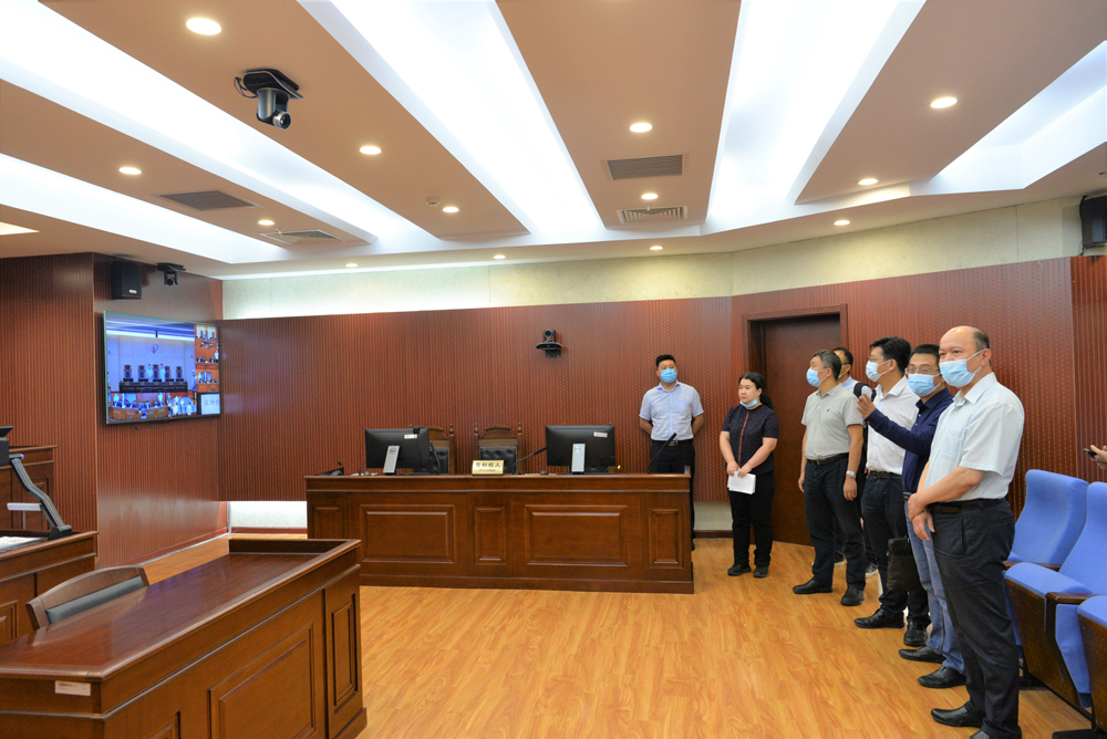 陈伟一行在审理庭现场连线了复审和无效审理部的远程审理设备,测试了点对点远程审理的音视频质量和庭审效果,视频画面清晰,声音清楚。同时,参观了北京保护中心“一站式”知识产权协同保护窗口等公共服务区域。