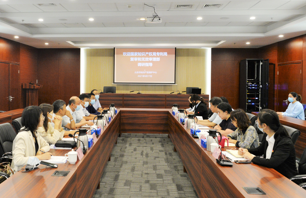 9月17日,国家知识产权局专利局复审和无效审理部(以下简称“复审和无效审理部”)部长陈伟一行赴北京市知识产权保护中心(以下简称“北京保护中心”)调研专利复审无效案件多模式审理试点工作推进情况,北京市知识产权局党组成员、副局长潘新胜参加调研。
