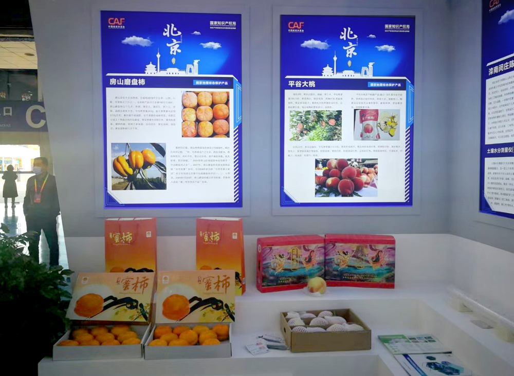 本届杨凌农高会上,北京市知识产权局组织“平谷大桃”“房山磨盘柿”等北京市地理标志作为产品代表,通过展板、视频、宣传手册、实物等多种形式,展示和宣传知识产权在巩固脱贫攻坚成果和助力乡村振兴方面取得的成绩,吸引众多参展人员驻足参观。
