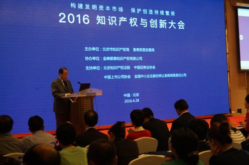 4月28日,时值第十六个“世界知识产权日”之际,由北京市知识产权局与香港贸易发展局共同主办的2016知识产权与创新大会在京顺利召开。世界知识产权组织中国办事处陈宏兵主任,我局汪洪局长、潘新胜副局长,北京知识产权法院宿迟院长,香港贸发局华北及东北首席代表何建荣先生等出席会议。来自我市知识产权领域、金融投资领域等相关单位200余名代表参加会议。