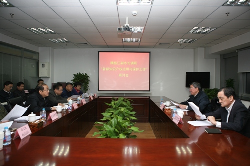 之后,隋振江副市长在北京代办处召开了“知识产权运用与保护工作”座谈会,听取了我局汪洪局长关于知识产权工作相关情况的汇报。